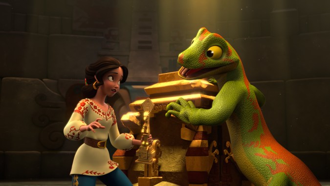Trejo plays Antonio Agama, a swashbuckling adventurer who, as the actor shares in this exclusive behind-the-scenes video, is always getting in trouble. In fact, after an adventure gone wrong, he’s turned into a giant (adorable!) gecko. He’s but the latest of a string of fascinating characters that populate the world of Avalor, which has already introduced audiences to Jaquins (a mix between a jaguar and a macaw), sorceresses, spirit animals in the shapes of foxes and sloths, and even magical volcano monsters!