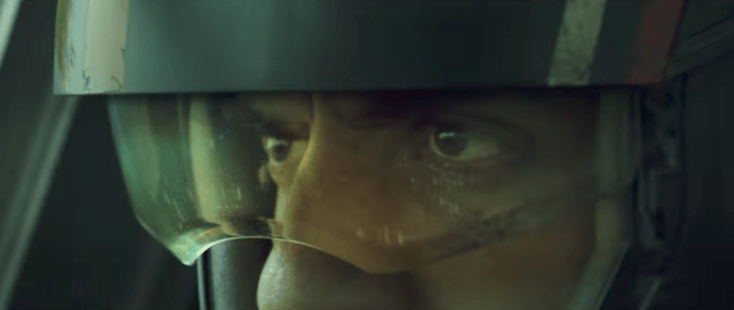 Finally, we see him delivering the aforementioned line, though we don’t know who is on the other end of his speech. He could be giving a pep talk to his buddy Finn, who we subsequently see in a duel with Captain Phasma, or trying to rally his fellow Resistance pilots.