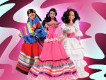 Ferrera’s Barbie is dressed in a nearly all-pink outfit with pinstripe pants, a blouse, and a jacket. The doll is also designed wearing hoop earrings and multicolored heels with straps that wrap around its ankles.