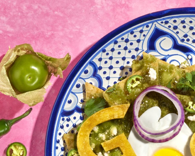 Oropesa added that he felt he had a huge responsibility to capture the essence of chilaquiles. To do this, he used his childhood memories as inspiration, including how his tía would bring the dish to the family’s annual New Year’s celebration and the freshness and flavor of his mother’s salsa verde.