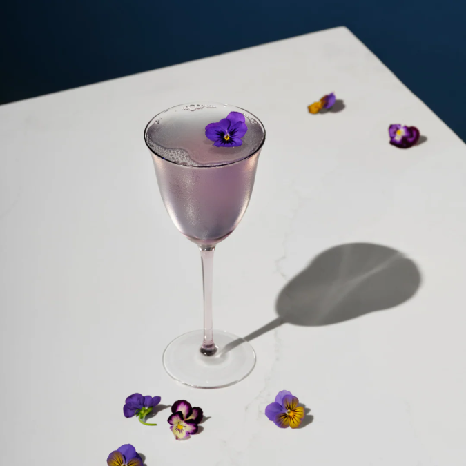 - Garnish: 1 Lemon Wheel, 1 Edible Flower, Citrus Salt