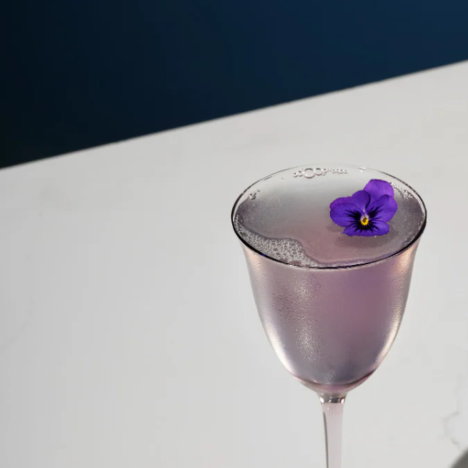 - Garnish: 1 Lemon Wheel, 1 Edible Flower, Citrus Salt