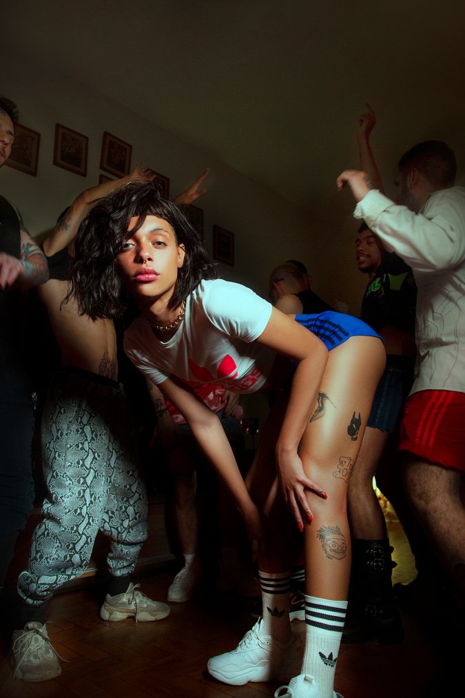 Sharing their side of the story has made all the difference for Brazil’s powerful and extremely prolific queer and trans femmes. Groundbreaking baile funk artists like Lacraia, Mulher Pepita and MC Trans have successfully disrupted the genre’s reputation as an impenetrable boys club, scoring millions of plays across streaming platforms. Coimbra and Urias also listed numerous emblematic figures of Brazilian LGBTQ+ history, ranging from queer rock icon Ney Matogrosso to legendary drag artists like Silvetty Montilla, Márcia Pantera, Salete Campari, and Miss Biá—the latter coming to prominence in the 1960s at the height of the military dictatorship and remaining a fixture of the community until her recent passing at 81-years old. As in most queer scenes, punk and theater are also home to vital agitators, and in Brazil few are more respected than experimental performance troupe Dzi Croquettes and travesti legend Claudia Wonder, who shocked audiences by splashing herself with fake blood at the apex of the AIDS crisis.