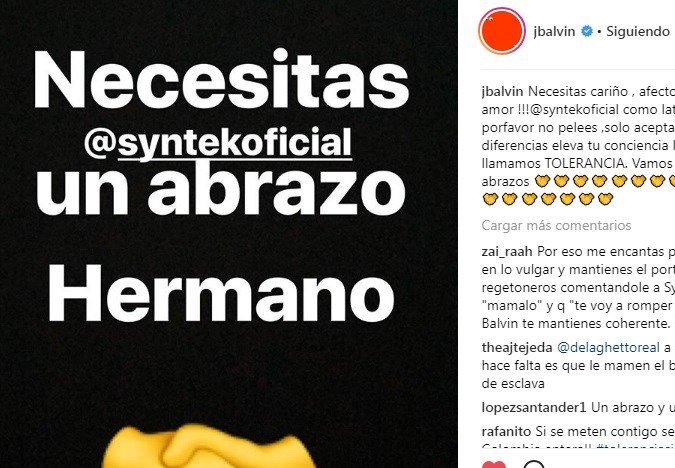 In a now-deleted Instagram post, J Balvin replied to Syntek. “You need care, affection, and a lot of love! @syntekoficial as a Latino, please don’t fight, just accept differences. Elevate your conscience [to] what we call tolerance,” wrote the Colombian star after calling on his fans to “send him hugs.”