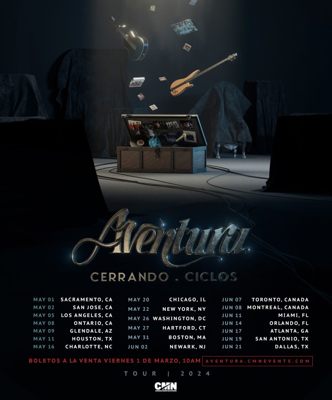 Ring the alarm! Aventura has officially reunited and they’ll be hitting the road in the U.S. Today (Feb. 27), the bachata group announced the dates for their 2024 Cerrando Ciclos Tour, which they say will be the last time they will come together on stage.