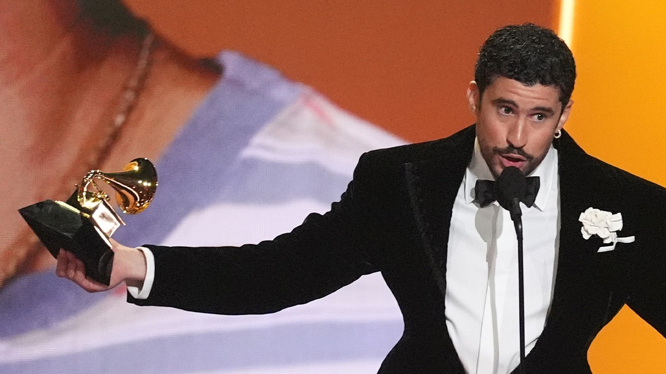 For the conclusion of his speech, Bad Bunny then slipped back into Spanish. “For all the people who have lost someone close to them and had to move forward with lots of strength, this award is for you,” he said. “Thanks for all the love. I love you. To all of the Latinos of the world and all the artists that came before me and deserved to be on this stage, holding this award, thank you so much.”