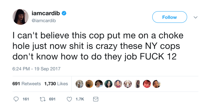 In Now-Deleted Tweets, Cardi B Alleges She Was Put in a Chokehold by NYPD