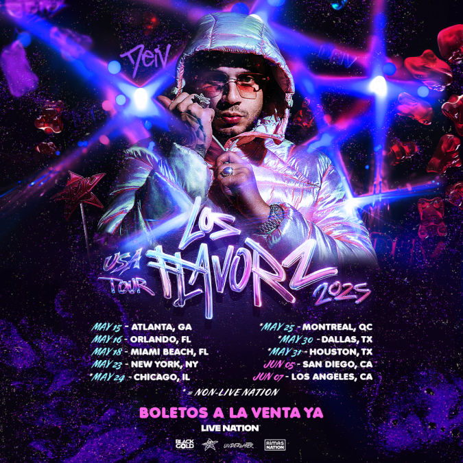The LOS FLAVORZ USA TOUR 2025 kicks off on May 15 at the Buckhead Theatre in Atlanta, GA. From there, he will also make stops at the House of Blues in Orlando, FL (May 16), the Fillmore Miami Beach at Jackie Gleason Theatre (May 18), and the Irving Plaza in New York, NY (May 23). Following his performances at the Sueños Music Festival (May 24) and the Fuego Latin Music Festival (May 25), the tour will continue at the Dallas Nova Event Center (May 30), Club Aragon in Houston, TX (May 31), and the House of Blues in San Diego, CA (June 5). Dei V’s last stop will be at the Regent Theater in Los Angeles, CA, on June 7.