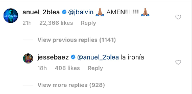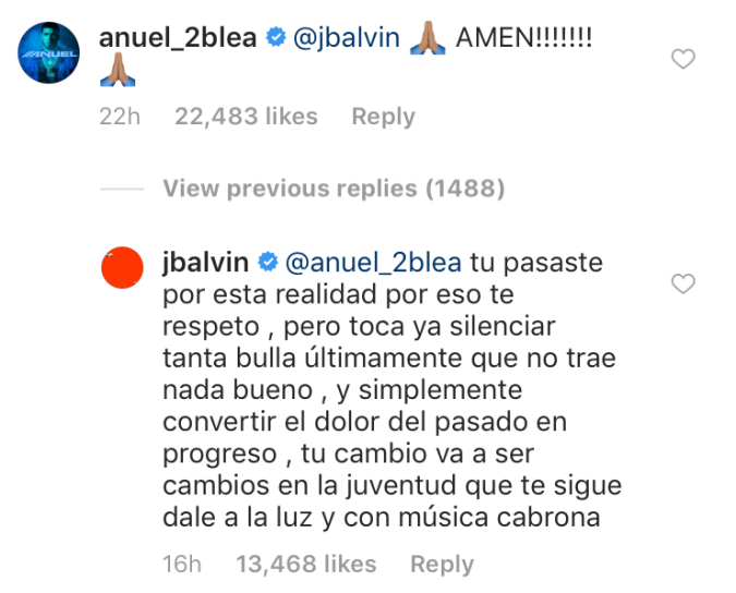 Viral Latin trap star Anuel AA is facing criticism from several artists for commenting “Amen” on Balvin’s post. The Puerto Rican rapper was recently released from federal prison after being arrested in 2016 on gun charges, and has risen to fame despite his explicit lyrics. Fellow artists and fans are claiming the post was directed at him, and pointing out the hypocrisy in his comment.