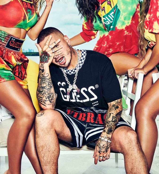 The latest chapter in J Balvin’s fashion saga takes place at the house of Marciano. The Colombian reggaetonero has announced his “Vibras” collection with famed stonewashed denim sex kitten brand Guess.