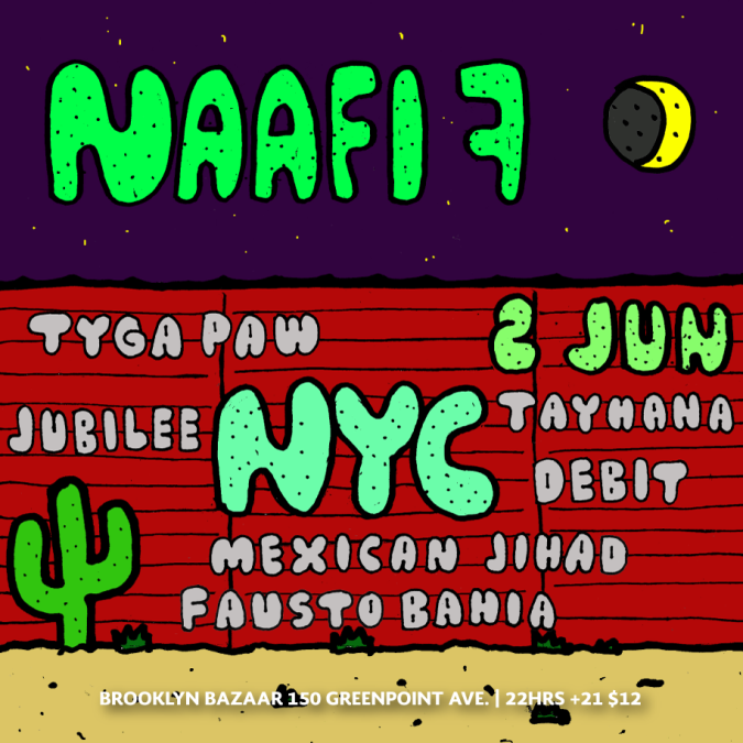 2017 marks NAAFI’s seventh anniversary, and that means their never-ending celebration is getting multiplied – by a factor of three, to be precise. The crew will host blowouts in New York, Los Angeles, and Mexico City on June 2, 3, and 10, respectively, featuring many of the crew’s most prominent affiliates and friends. Co-founders Mexican Jihad and Fausto Bahía are hosting the three nights, and will be joined by Lao, Imaabs, OLY, Tayhana, Omaar, Füete Billëte, and Wasted Fates, plus special guests DEBIT, NA (from Nguzunguzu), Jubilee, and more. If you’ve never experienced a NAAFI night, it’s time for you to find out what you’ve been missing.