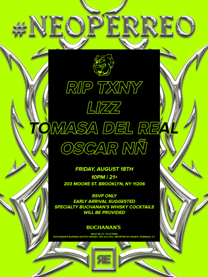 This summer, del Real and some of Chile’s brightest club stars have been taking #NEOPERREO on a world tour, recently hitting Mexico City and now heading to Brooklyn to light it up. On August 18th, #NEOPERREO will be taking over the Remezcla headquarters in Brooklyn, where Tomasa will drop her ‘bellakeo del futuro’ alongside trap newcomer RIP TXNY and ultra-chic queen of the decks, Lizz. Papi Juice co-founder Oscar Nñ also joins the lineup.