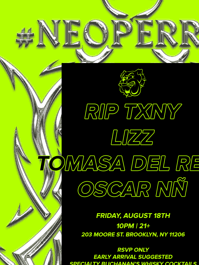This summer, del Real and some of Chile’s brightest club stars have been taking #NEOPERREO on a world tour, recently hitting Mexico City and now heading to Brooklyn to light it up. On August 18th, #NEOPERREO will be taking over the Remezcla headquarters in Brooklyn, where Tomasa will drop her ‘bellakeo del futuro’ alongside trap newcomer RIP TXNY and ultra-chic queen of the decks, Lizz. Papi Juice co-founder Oscar Nñ also joins the lineup.