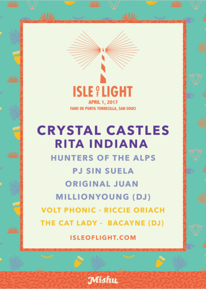 Let’s cut to the chase. El Faro de Punta Torrecilla, in San Souci, will witness the return to the stages of none other than Rita Indiana. You read that correctly: RITA. INDIANA. The Dominican musical and literary goddess who stated over two years ago she wouldn’t perform live again “ni por un millón de dólares” has come back to us. La Montra is headlining the festival with a special solo show, along with Canadian electronic duo Crystal Castles in their post-Alice Glass iteration.