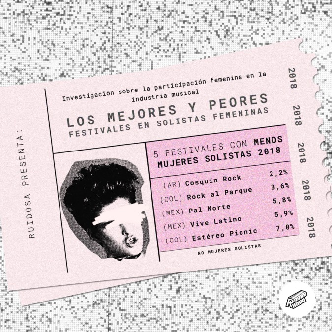 Over the last few years, the Chilean feminist collective Ruidosa has been taking a look at how often women make the bill at major Latin American music festivals. The powerhouse organization crunched the numbers for 2018 and, as much of a bummer as it is, the message couldn’t be clearer: women still aren’t getting booked for festivals and organizers need to do better.