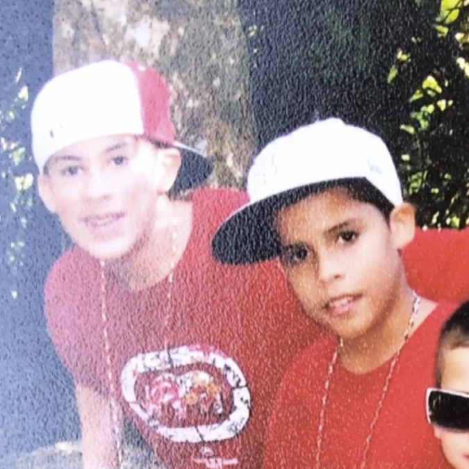 Early 2000s (we’re guessing) kid squad goals: Everyone in red tees, got some rosaries in there, hat flow, sunglass flow, baggy jeans.