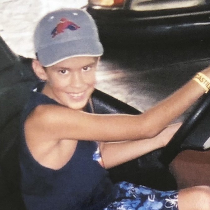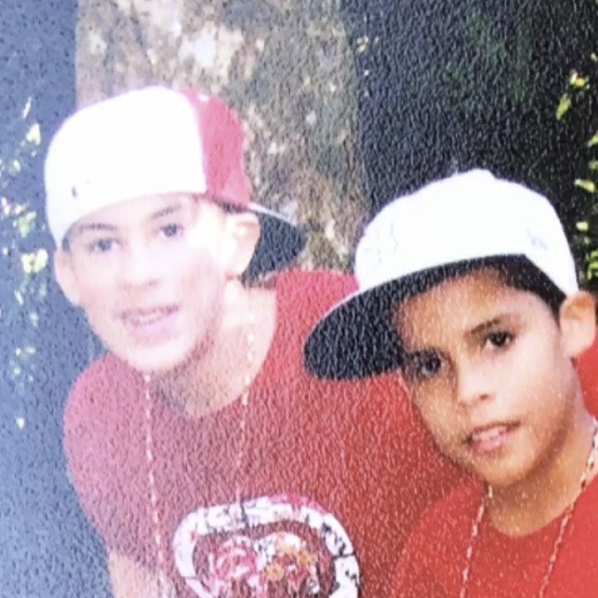 Early 2000s (we’re guessing) kid squad goals: Everyone in red tees, got some rosaries in there, hat flow, sunglass flow, baggy jeans.